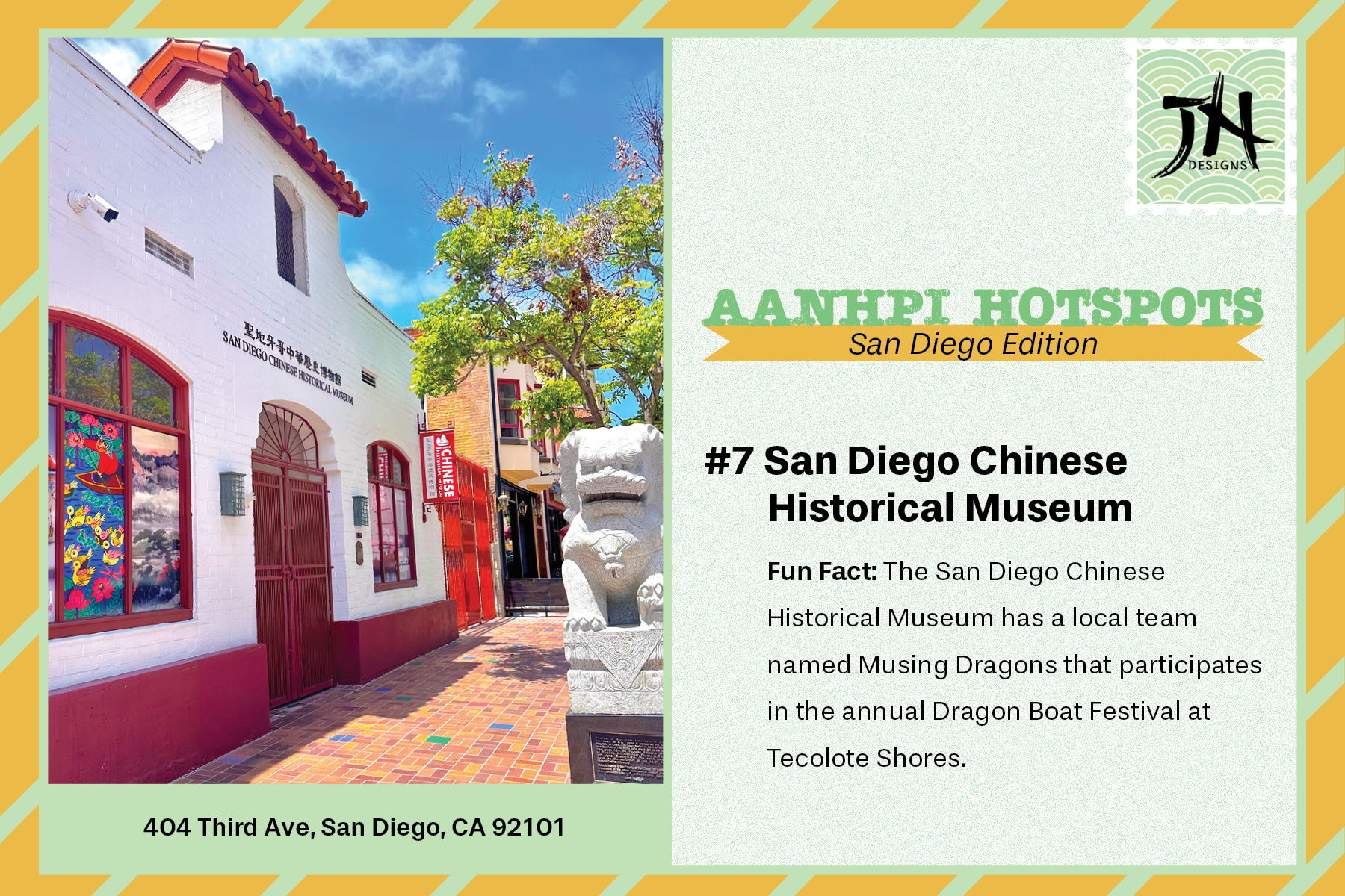 Overview: In honor of AANHPI Heritage month during May, I wantto shed light on some notable AANHPI landmarks throughout San Diego, in the style of postcards. The goal is to educate people and encourage them to visit hidden historical gems to bring a sense of cultural identity and representation.